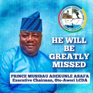 The Chairman of Oto-Awori Local Council Development Area, Prince Musibau Asafa, is dead.