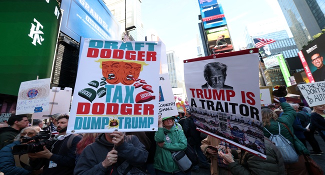 “This president is a disgrace, and I hope there will be millions in the street today,” Stephanie, a 36-year-old hospital worker who did not give her last name, told AFP in the Queens borough of New York, where hundreds had already gathered in the morning.