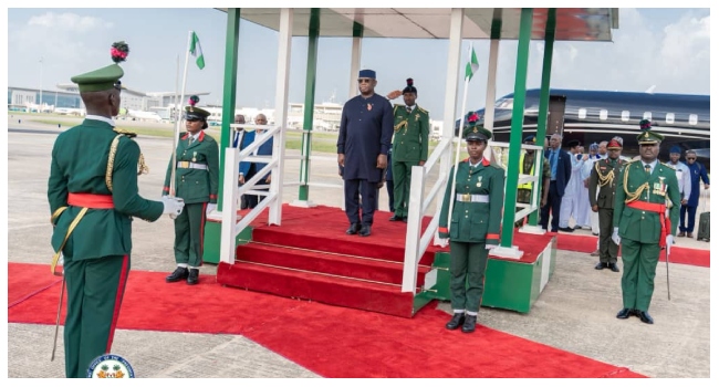 On arrival, Bio, who is also the Chairman of the Economic Community of West African States (ECOWAS) was given a Presidential ceremonial welcome.