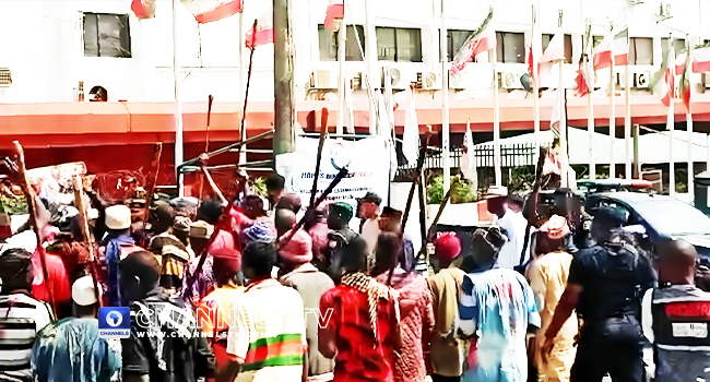 The police fired teargas as Anyanwu’s supporters tried to block the group from entering the secretariat.
