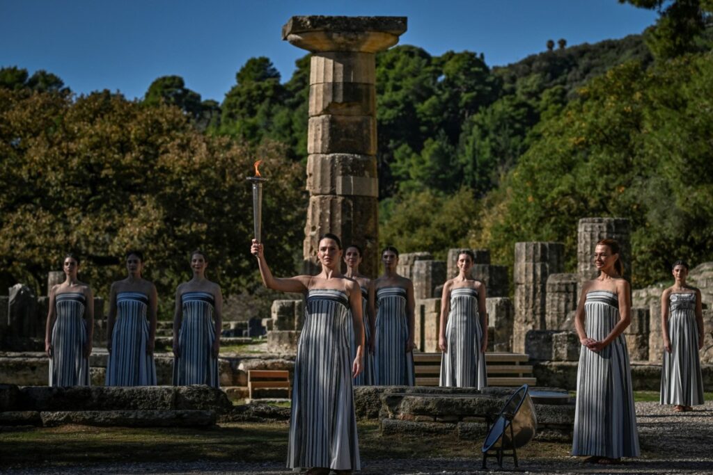 But a rainy weather forecast — which proved mistaken — raised concerns that the sun’s rays would not be able to sufficiently heat up the parabolic mirror used by actresses dressed as ancient priestesses to light the flame.