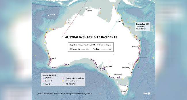 There have been more than 1,280 shark incidents around Australia since 1791, of which over 250 resulted in death, according to a database of the predators’ encounters with humans.