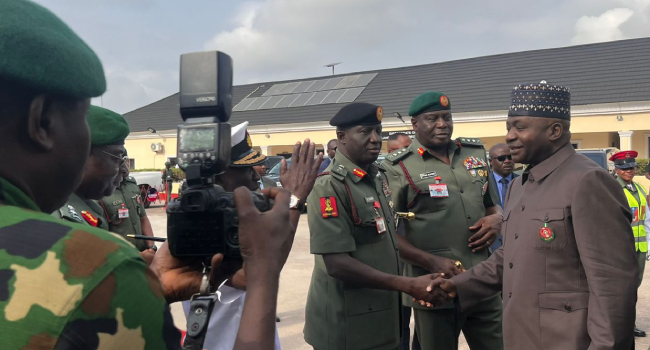 The Minister of Defence, General Christoper Musa (retd.), and the service chiefs are also on the ground.