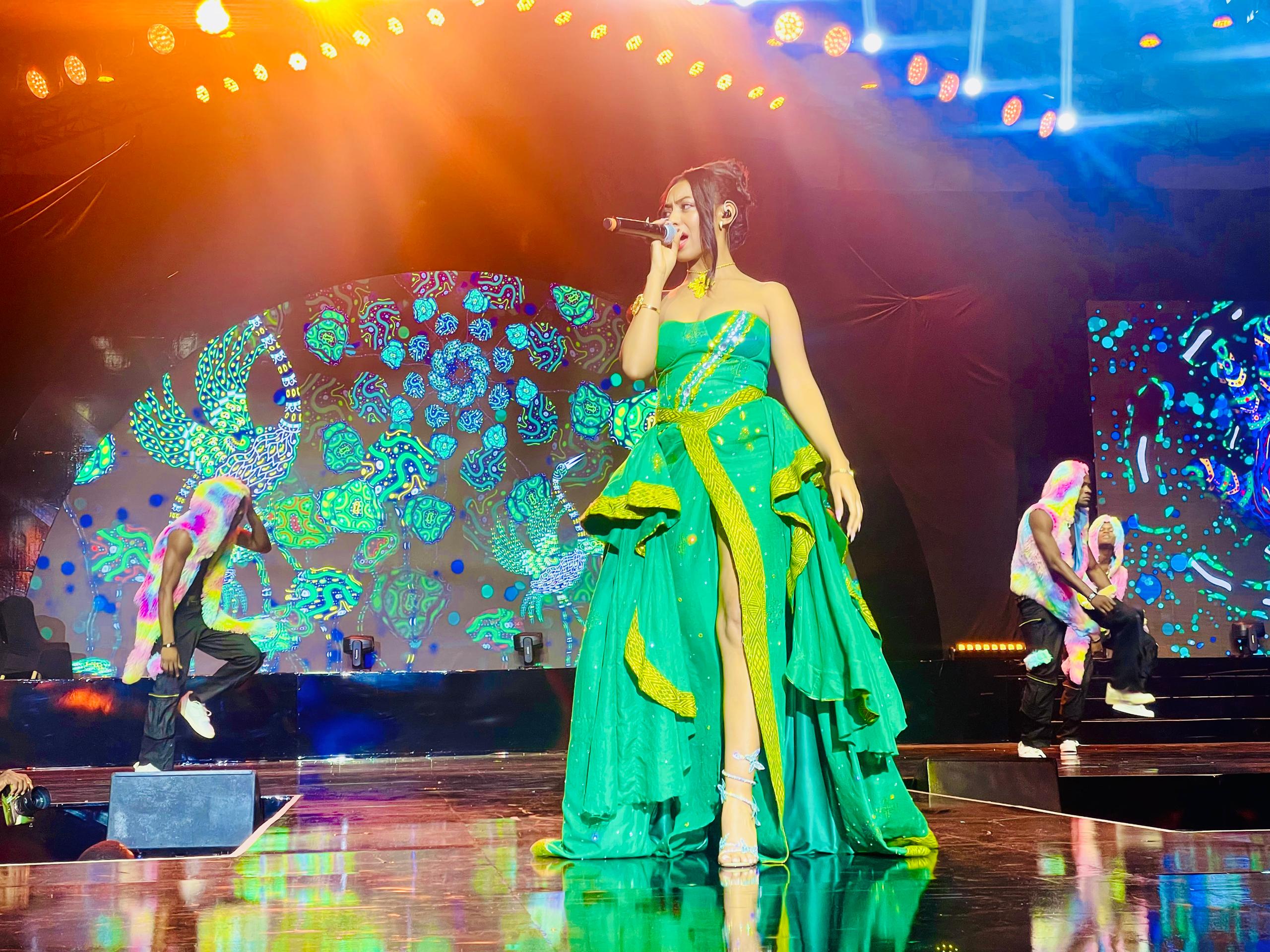 Congolese star Cindy Le Coeur embraced refined glamour in an emerald green mermaid dress with cultural embroidery, subtly paying homage to her Central African roots.