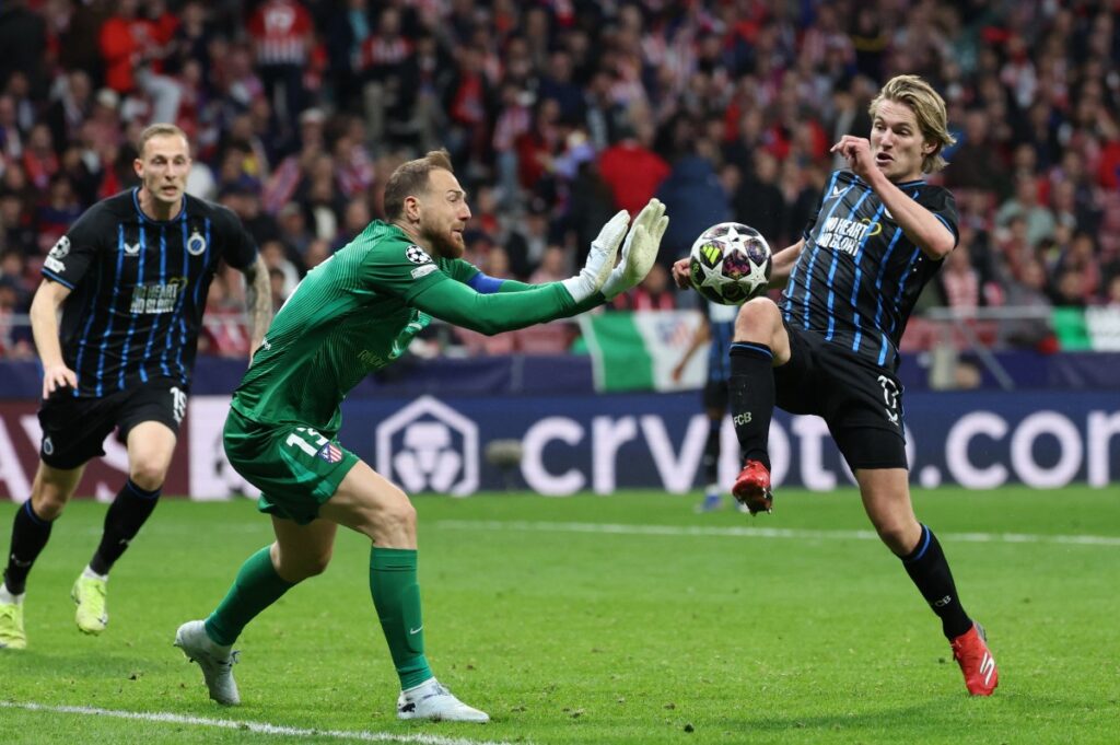 Brugge almost took the lead before the break, but Oblak made a superb save to claw out Vetlesen’s header.