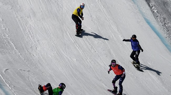 Athletes compete in the women’s snowboard cross event during the Milano Cortina 2026 Paralympic Winter Games in Cortina d’Ampezzo on March 8, 2026. (Photo by JEFF PACHOUD / AFP)